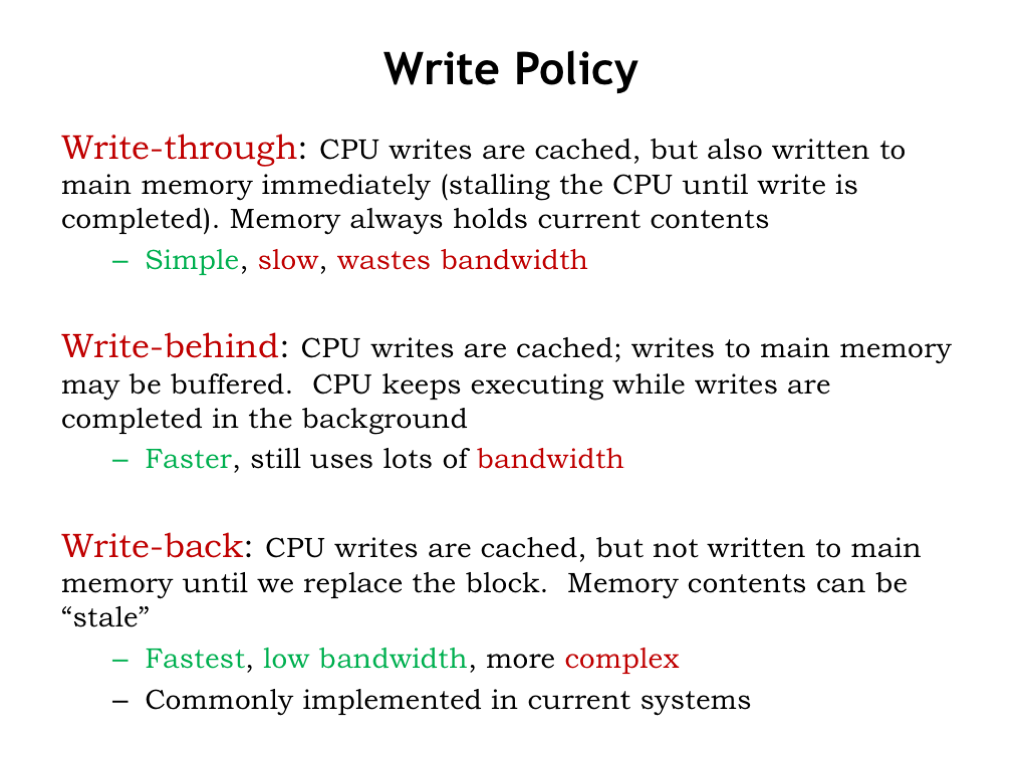 If all the cache lines are occupied then one of the existing blocks will have to be. Unlike instruction fetches and data loads where reducing latency is the prime goal the. Write-through write-around and write-back.